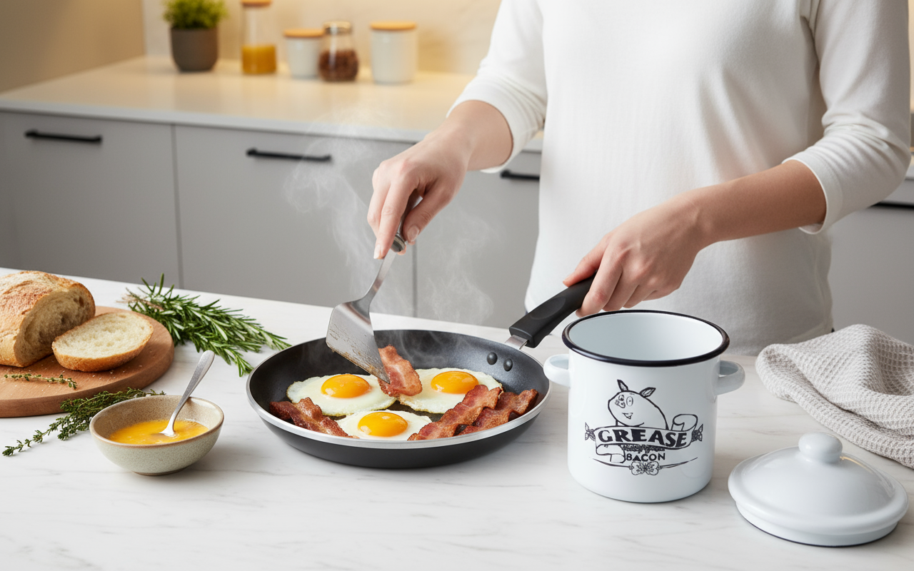 Schön gemacht Behälter, um das gefürchtete Speckfett zu verstecken. LIEBE, dass es einen eingebauten Sieb hat. Super leicht zu reinigen und sieht gut in meinem Schrank aus. Deckel passt fest genug, dass Sie es auch nicht riechen.Ich empfehle es sehr.!