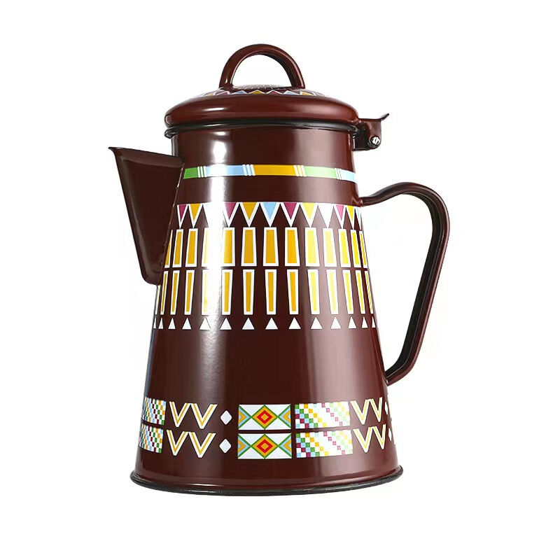 Classic geometric pattern cool water kettle Camping kettle Multiuse CarbonSteel boiliing water kettle coffee & oil kettle